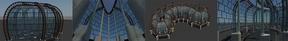 This use case shows how to build a parametrized glass-house (beams geometry & components, glass subdivision, materials properties, etc.).