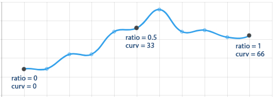 - ratio: curvilinear abscissa ratio. Value: 0 to 1.