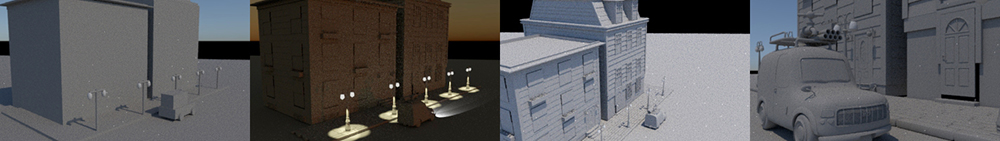 - Step 2: With these low resolution objects, merged into the scene, the lighting arist can set the lights