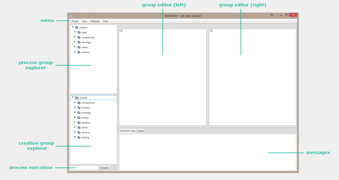 Assembler UI is very simple to use: create a project, manage process group, creation group, process, creations & execute process.